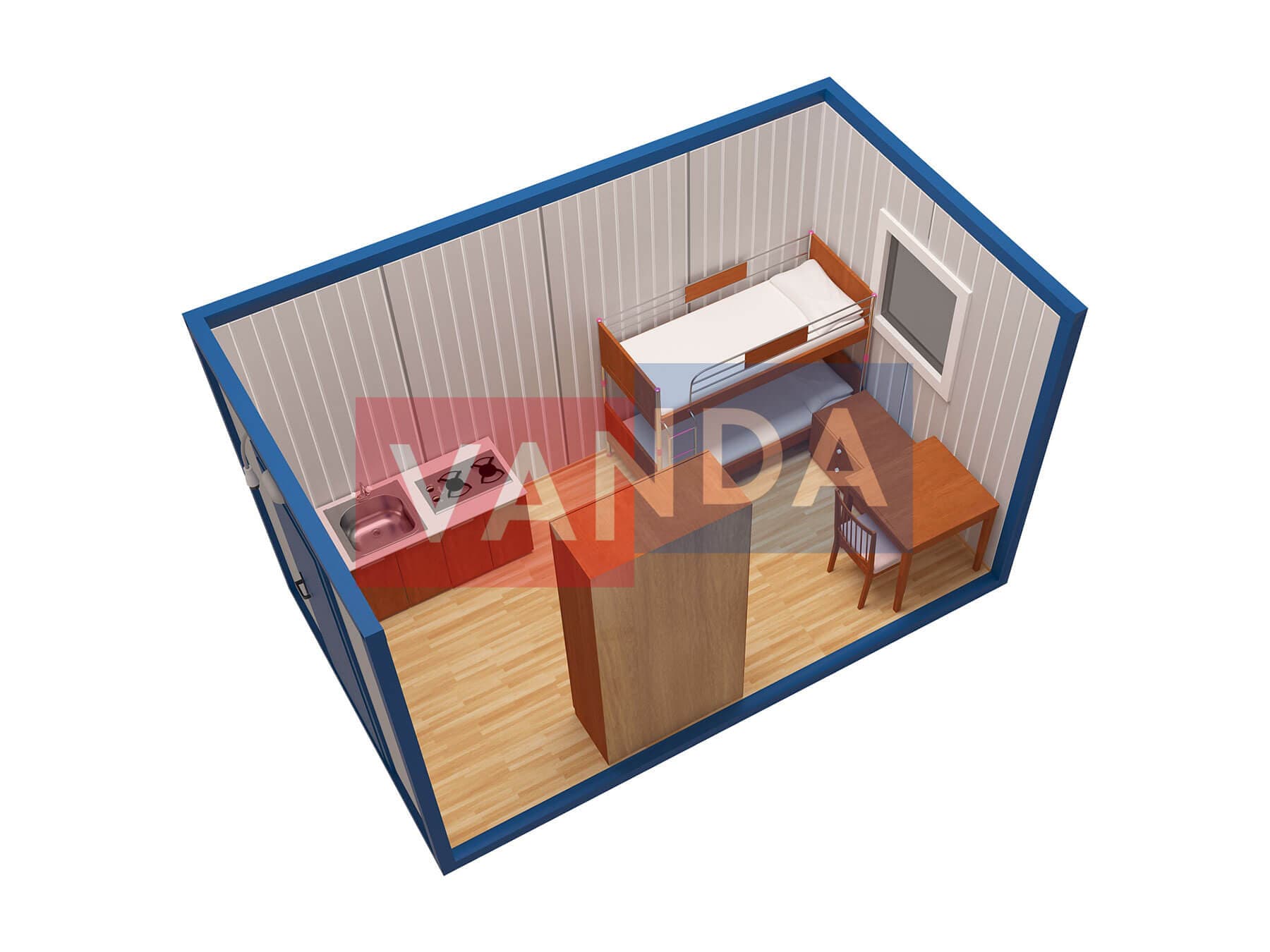 Металлическая бытовка с тамбуром 5,85 x 2,4 - Оргалит ДВП