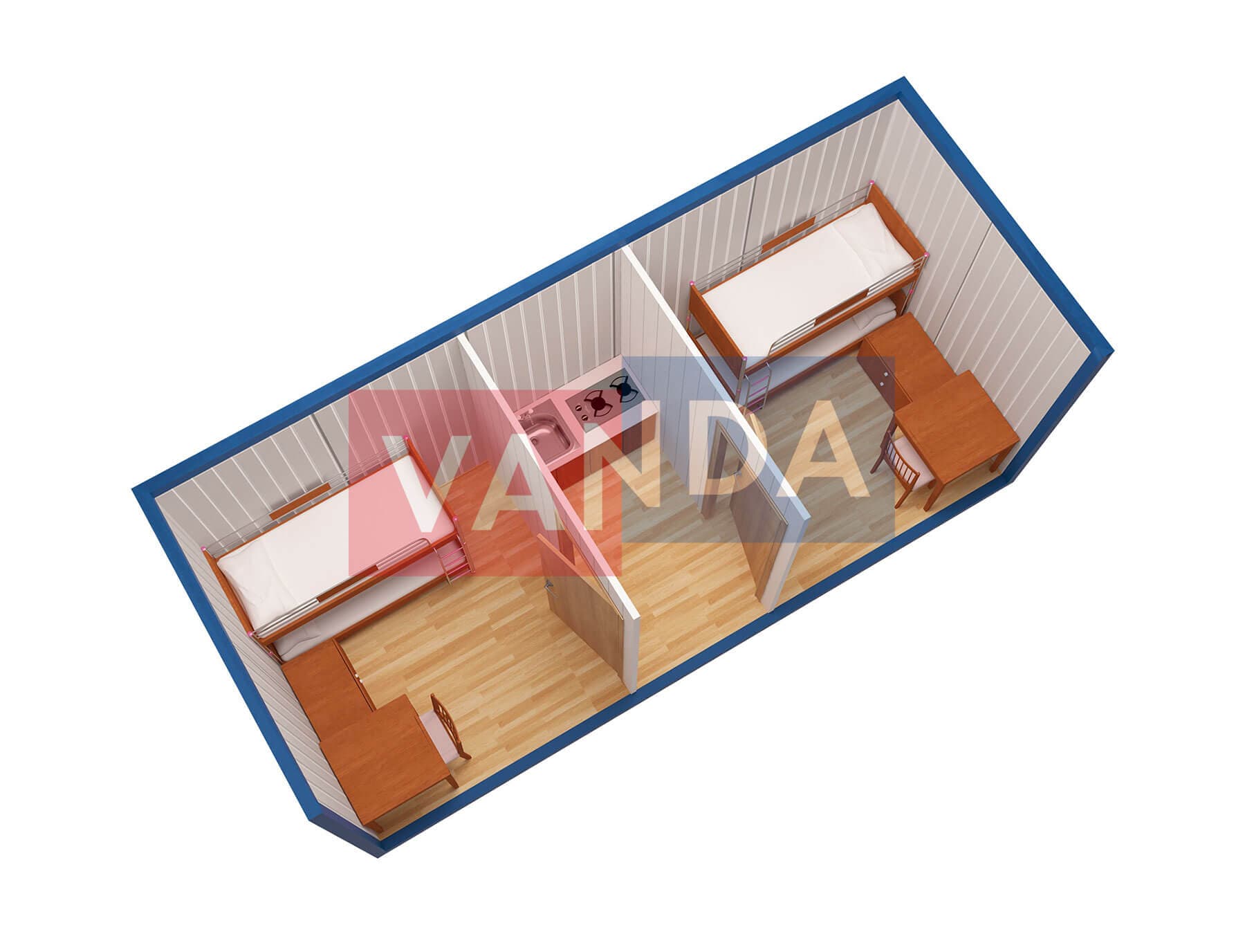 Металлическая бытовка с тамбуром 5,85 x 2,4 - Оргалит ДВП