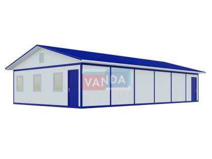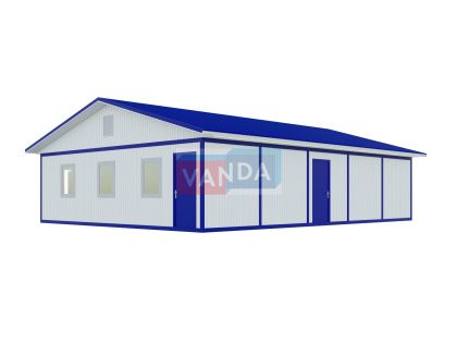 Подобный пищеблок представляет собой помещение, которое выполнено на металлическом каркасе, утеплено и оборудовано соответствующим образом. Помещение внутри довольно просторное. При заказе руководитель предприятия вместе с представителя компании-изготовителя рассчитывают общую вместимость обеденного блока модульной столовой на 50 или 100 мест для осуществления принятия пищи сразу большого числа работников.Конструкция столового вагончика – это жесткий каркас, который обшит оцинкованным листом, утеплен и герметизирован пароизоляционной пленкой. Сверху сооружение облицовано листовым холоднокатанным сварным окрашенным металлом 1,2мм. Окна представлены в виде двухкамерных стеклопакетов. Входная дверь – металлическая, внутренние – деревянные. Пол утеплен и покрыт бытовым линолеумом. Столовая может быть оборудована необходимыми системами пожарной сигнализации, отопительными приборами и вытяжками.